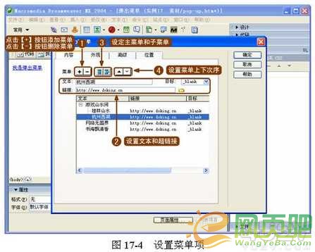 ( 2 )設置菜單項和子菜單項,並為菜單設置超鏈接,然後安排好各個菜單的次序,如圖 17-4 所示。