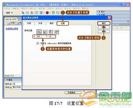 ( 5 )設置的 x 軸和 y 軸參數。在【位置】標簽選項中設置彈出菜單的 x 軸和 y 軸參數,這兩個參數表示彈出菜單左上角到網頁左上角的距離,如圖 17-7 所示。