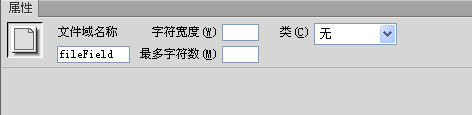 7. 點擊“文件域”,打開“文件域”屬性面板。如下圖所示: