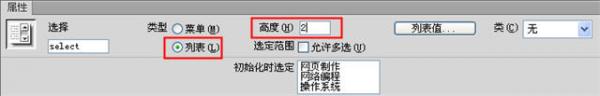 7. “高度”項:指定列表要顯示的行數。size屬性。