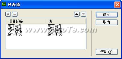 9. “列表值”按鈕:點擊“列表值”按鈕添加列表選項,出現“列表值”對話框,如下圖所示: