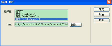 “轉到 URL”行為可以讓用戶在當前窗口或者指定框架中打開一個新頁面。不僅可以由不同的事件來執行,而且對於一次改變兩個或兩個以上框架的內容特別有用。