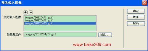 在“圖像源文件”文本框中輸入圖像文件的URL地址,或者點擊“浏覽”按鈕選取要預先加載的圖像文件。