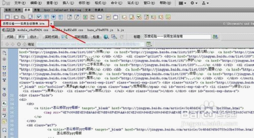 7.使用Dreamweaver將網頁文件打開後,我們能夠看到相關的源代碼,如下所示;