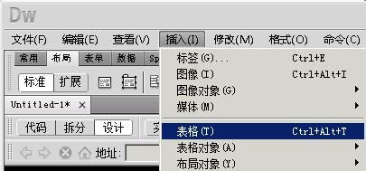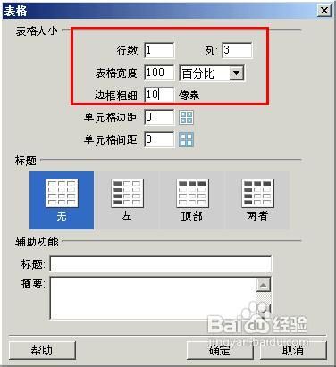 5.接著在表格的第二行插入一個1行3列的表格,如圖所示,將光標放到表格的第二行,然後在菜單欄上執行:插入--表格。將表格邊框設置為10像素,寬度是100%