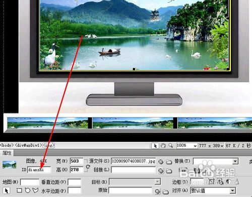 8.插入一個ap div,div的大小正好能夠覆蓋電視機的屏幕,這樣我們可以在div裡插入圖片,顯示的效果就是電視機的播放效果了。