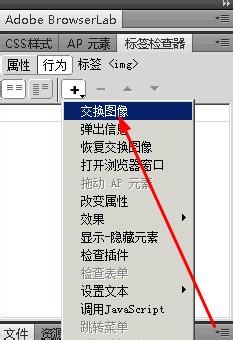 12.在行為窗口中,點擊添加按鈕,在打開的對話框中,我們選擇【交換圖像】