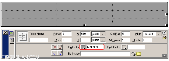 3、設置表格的背景色#999999,如圖四;