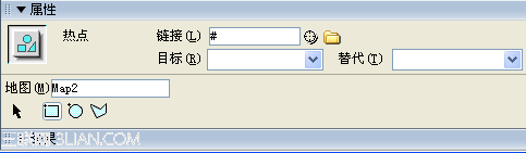 2、屬性面板改換為熱點面板如圖:鏈接輸入框:填入相應的鏈接。替代框:填入你的提示文字說明。目標框:不作選擇則默認在新浏覽器窗口打開。