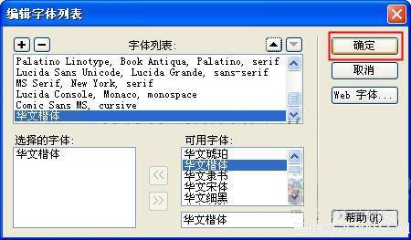 將字體樣式移到字體列表中後,按“確定”按鈕即可。