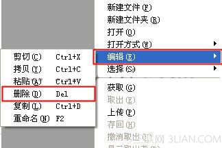 在右擊菜單中選擇“編輯”下的“刪除”按鈕,如下圖所示:
