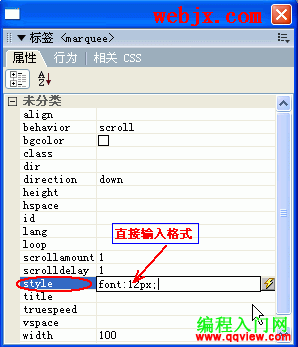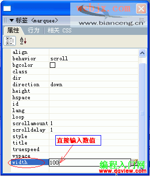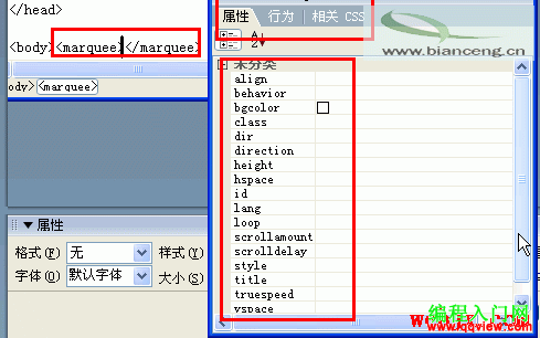 使用“標簽檢查器”設置marquee標簽的屬性