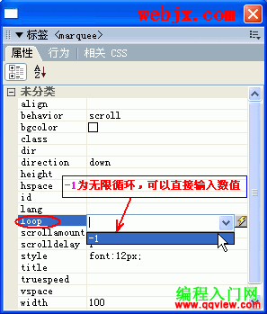 13.loop屬性設置字幕內容滾動次數,默認值為無限。“-1”也為無限。