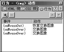 交換圖像的制作原理是應用到Dreamweaver中的行為面板上的翻轉圖像(Swap image)這一個工具。將它設置成為當產生鼠標懸停在某一個按鈕圖片的動作的時候,讓按鈕本身實現一個圖像的交換(交換成為黃色文字的圖片),與此同時設計指針圖像的交換(交換成為指針指向當前按鈕的指針圖片),以實現上述效果的實現。