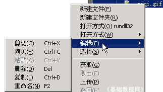在右鍵菜單裡有個“編輯”菜單,這裡面有“拷貝、粘貼、刪除、重命名”等命令;