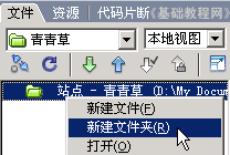 1)在右邊的側邊欄中間,在文件面板中找到“站點-青青草”,瞄准敲右鍵,選“新建文件夾”命令,新建一個名為 images 的文件夾;