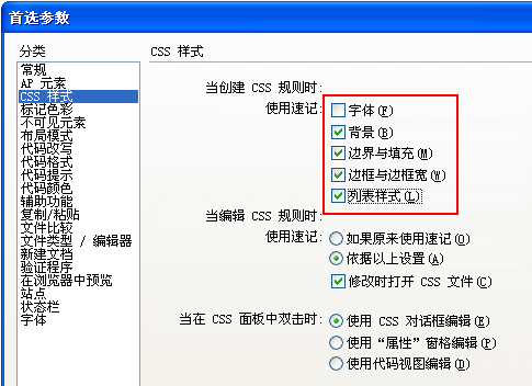 代碼減少了,也方便閱讀了,實現起來很簡單,選編輯中的首選參數——css樣式,把圖中紅框部分的選中就行了。