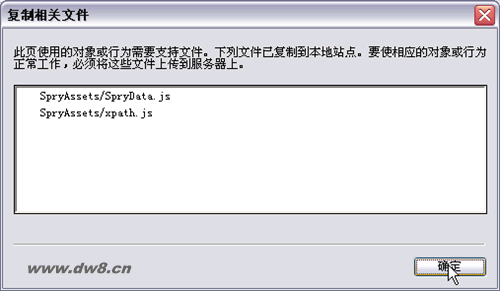 保存網頁會提示我們保存Spry效果文件,記得上傳的時候要連同這些文件一起上傳。