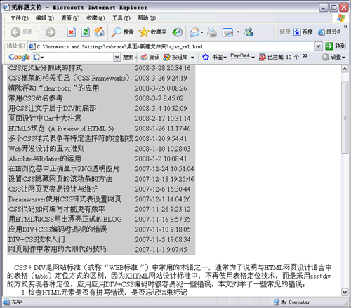 跨域顯示遠程XML數據,同時單擊每行標題都能在當前頁無刷新打開內容查看,甚好。