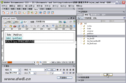 Dreamweaver CS3中集成了Spry功能我們都知道,Spry具有對XML數據處理的功能我們也見識過,不過對於Spry的詳細區域功能似乎很少見。