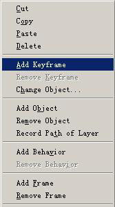 下面我們讓花瓣的運動顯得柔和一點,無規則一點。在等時線面板裡,在第15影格的地方單擊一下,確認等時線裡的紅線在第15格的位置,按右鍵,選擇add keyfreme,如圖9所示,這時主面板的圖層會自動移到第15格應該走到的位置,拖動圖層到其他的地方(可以任意的拖動,取決於你想讓這個花瓣如何運動),這一步是確認該圖層移動到第15影格的時候應該在什麼地方。然後將紅線移到第30格、第45格的位置重復上面的動作,再按F12預覽一下,此時花瓣就呈不規則的移動了。再次提醒,插入等時線的一定要是圖層而不是圖片,否則花瓣將不會移動。