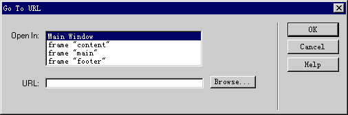 用 Dreamweaver 的“ Go to URL ” behavior 更簡單。對話框顯示所有的框架,在下面的“ URL ”欄填入相應的頁面就是。