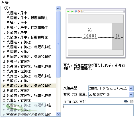 Dreamweaver 提供一組預先設計的 CSS 布局,它們可以幫助您快速設計好頁面並開始運行,並且在代碼中提供了豐富的內聯注釋以幫助您了解 CSS 頁面布局。Web 上的大多數站點設計都可以被歸類為一列、兩列或三列式布局,而且每種布局都包含許多附加元素(例如標題和腳注)。Dreamweaver 提供了一個包含基本布局設計的綜合性列表,您可以自定義這些設計以滿足自己的需要。請參閱使用 CSS 布局創建頁面。