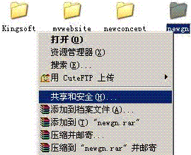 2,回到newgn的根目錄,右鍵選擇“共享和安全”(其實是快速地建立虛擬目錄)