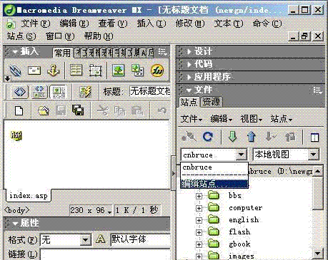 10,此時DW的站點屬性框中就將d:\newgn\內所有內容映射過來,在此需要提醒的是:DW中建好了站點連接,就可直接在DW中對其對應的文件、文件夾操作,最好不要回到我的電腦d:\newgn\裡面去操作。【 能在DW中操作的,盡量不要離開DW的編輯環境 】