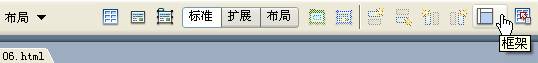 (1)、新建一個HTML文件,在快捷工具欄選擇“布局”,單擊 “框架”按鈕,在彈出的下拉菜單中選擇“頂部和嵌套的左側框架”。