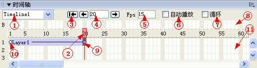 (2)時間軸指針:在界面上顯示當前位置的幀。