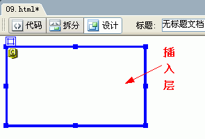 使用這種方法插入層,層的位置由光標所在的位置決定,光標放置在什麼位置,層就在什麼位置出現。選中層會出現六個小手柄,拖動小手柄可以改變層的大小。
