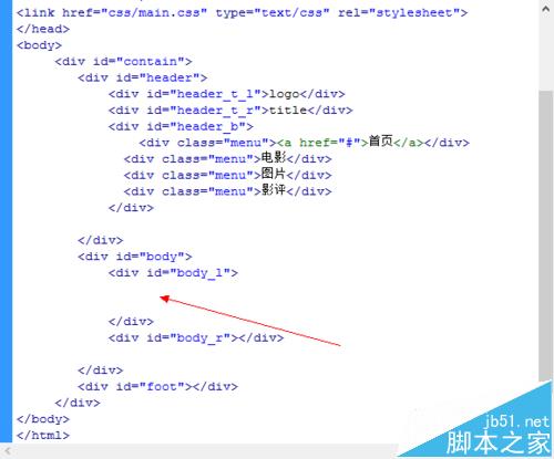 3、然後我們輸入文字,將要對div進行定義。定義當然在main文件中進行。