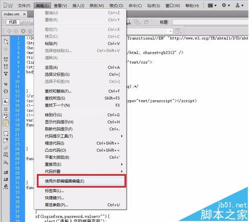 2、在菜單欄中點擊“編輯”選擇“使用外部編輯器編輯”菜單