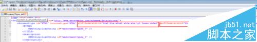 4、編輯Dreamweaver安裝目錄下的\configuration\DocumentTypes\MMDocumentTypes.xml文件。修改第三行的兩個參數,在參數末尾添加“,vm”。修改完畢後保存。