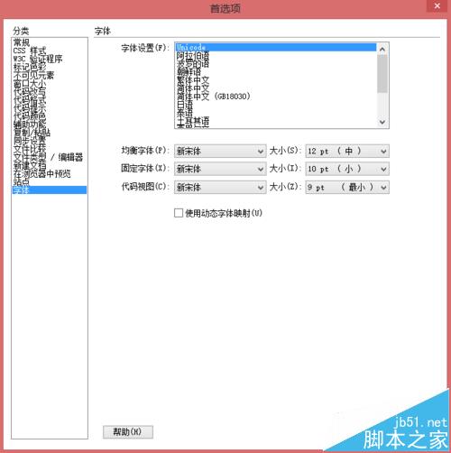 3、在“首選項”中找到“字體”,全部設置成統一的字體, 可都設置為“宋體”;