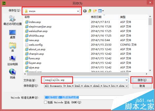 3、按Ctrl+S保存剛剛新建的網頁,保存在你創建的測試服務器(見我前幾個分享的百度經驗)的文件夾裡邊,並且後綴一定是asp。