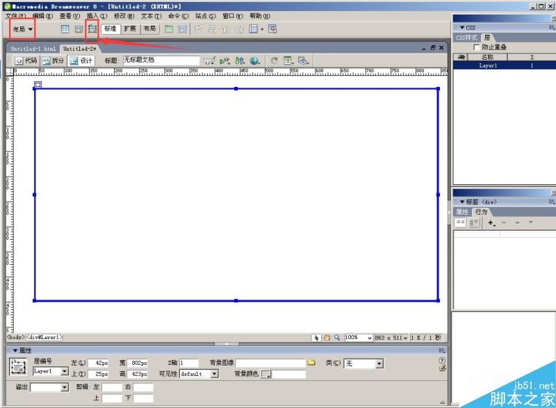 1、打開DW軟件,新建“HTML”,然後打開“布局”屬性,我們添加一個apdiv,用來置放我們的圖片;
