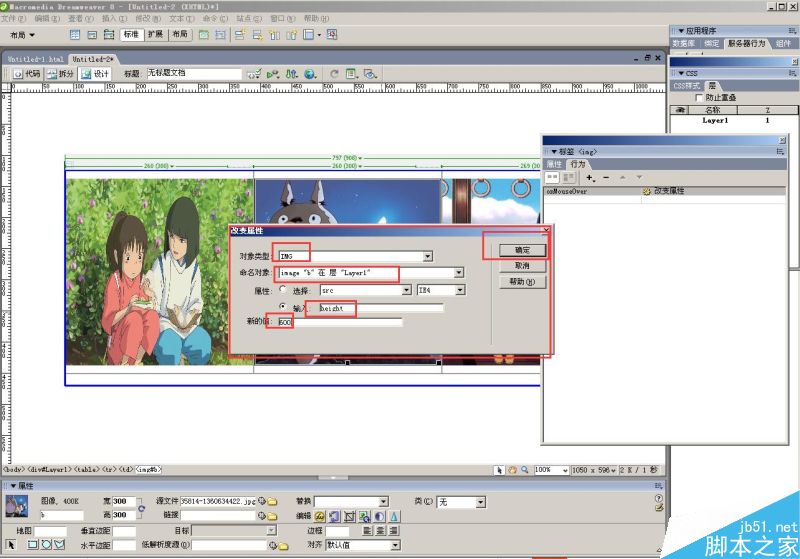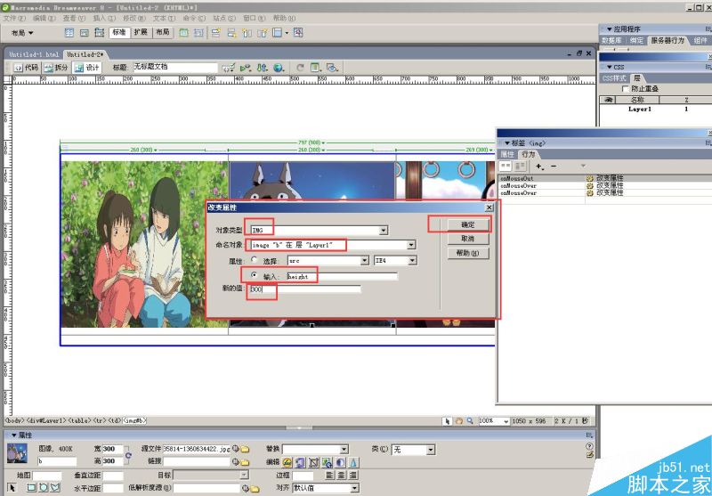 8、將觸發行為修改為onmouseover,也就是鼠標放到圖片上面的時候,就會將圖片的高度改為600;