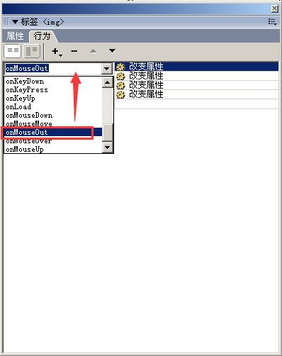 9、還有兩個行為要添加,按照上面的方法,目的是當鼠標離開圖片的時候,讓圖片恢復到原來的大小,如圖所示: