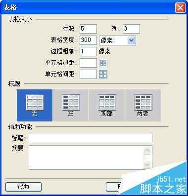 2、邊框粗細為1像素,單元格邊距和間距為零。(默認狀態即可)