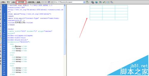 1、我們點實時視圖看預覽的表格邊框比較粗,實際上在浏覽器觀看也是一樣的,我就不貼圖了。