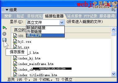 如果不想刪除這些文件,點保存報告按鈕(上圖所示),在彈出的對話框中您給報告文件一個保存路徑和文件名即可。該報告文件為一個檢查結果列表。你可以參照此表,進行處理。