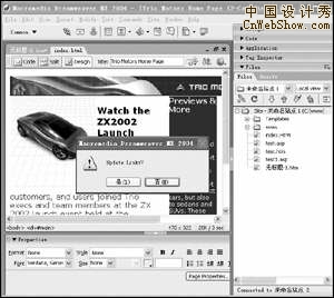 在通過模板創建了若干個頁面之後,如果需要更改頁面或者增加欄目,再對所有的頁面手工修改則非常麻煩,因此我們可以通過Dreamweaver MX 2004的模板修改功能來解決這個問題。比如我們對模板進行了修改之後,運行“File→Save”命令來保存模板,這時候會彈出提示框詢問是否更新所有使用了該模板的頁面(圖5),確認之後就會顯示出更新的頁面總數以及更新的時間等信息。