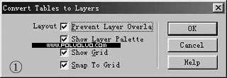 2、單擊菜單“Modify/Convert/Tables to Layers”,在彈出的對話框(如圖1)中選擇想要的選項。