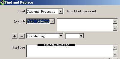 這和前面的Text選項都是對頁面的文本直接進行查找和替換。只是後者多了內部標簽(Inside Tag)和非內部標簽(Not Inside)這一更加具體的選擇,這表示當一段文字和某個標簽中的一段文字相同時,我們的查找替換工作可以分別進行。
