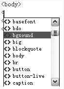 用Dreamweaver打開需要添加背景音樂的頁面,點擊“代碼”打開代碼編輯視圖,在〈 body〉〈 /body〉之間輸入“〈 ”在彈出的代碼提示框中選擇bgsound(圖1)。