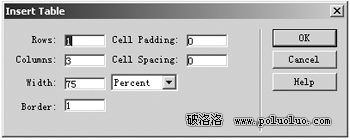 建立主菜單欄新建頁面,執行菜單“Insert/Table”命令打開“Insert Table”對話框,插入一個一行多列的表格,表格列數由你的菜單條目決定,同時設置“Cell Padding”、“Cell Spacing”以及“Border”參數(如圖1)。在建立的表格中輸入主菜單導航文字,選取表格及文字後,用快捷鍵“Ctrl+F3”打開其屬性窗口,我們可以定義一個字體控制CSS來控制文字屬性,調整相關參數。