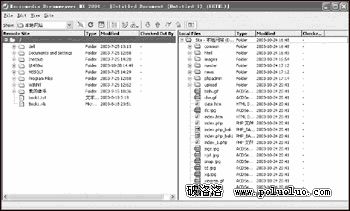 第一步 在Dreamweaver MX 2004中進入站點窗口,登錄到遠程服務器之後將輔助面板切換到擴展模式,接著設定好本地文件夾和遠程服務器的目錄。
