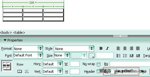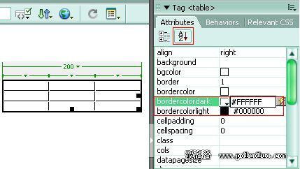 3.設置表格的CSS屬性border-collapse為collapse:按Ctrl+Alt+T插入表格,對話框的設置同法2。選中表格,在屬性面板中設置表格的邊框顏色: